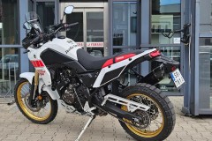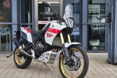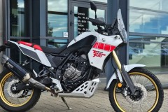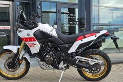 Ténéré 700 Rally Edition w klasycznym dla Yamahy biało-czerwonym rajdowym malowaniu, z grafiką speedblock i złotymi felgami, jest hołdem dla fabrycznych motocykli uczestniczących w rajdzie Dakar. Dzięki najwyższej jakości podzespołom oraz rajdowemu DNA Ténéré jest najlepszym motocyklem typu adventure nawiązującym do historii motorsportu.